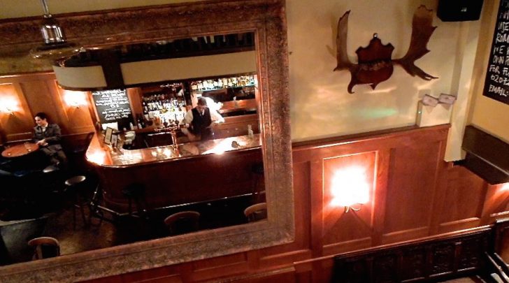平日オンリー営業と、近隣で働くバンカーや弁護士、出版関係者をターゲットにした戦略で毎日混み合う人気店ではありますが、伝統的なウッド・パネルが落ち着いた趣を見せる1階バーのほかに、中2階のバー、2階のダイニング・スペースもあり、美味しいおつまみとワインを楽しむ空間はたっぷり。