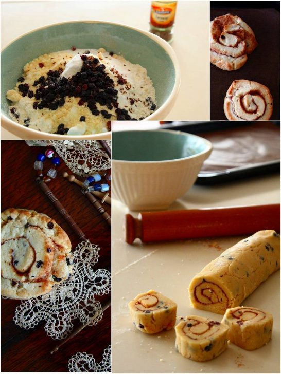 比較的新しいもう一つのタイプは車輪のように渦巻き模様。ベーキングパウダー入りの小麦粉に、カランツとお砂糖を入れ、シナモンとキャラウェイシードで風味を加えます。これを溶かしバターと卵でまとめ、平たく延ばします。お砂糖とシナモンをふって、端からくるくると巻き、シナモンロールのようにカットしてから焼くというもの。キャラウェイシードの香りとシナモンが主張する甘く贅沢なお菓子です。