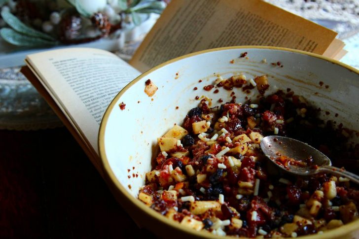 ミセスビートンのクリスマスマスのお菓子シリーズ、今回は皆さんご存じミンスパイ。ミンスミートと呼ばれる漬け込みドライフルーツをフィリングにした小型のパイです。ミンスミートは熟成が必要なので、前もっての準備が必要。ビートン夫人の家政書「Household management (1861)」にはそれぞれのレシピの後に、所要調理時間、材料代、出来上がり量、そして「いつの季節に作るとよいか」も記載されているのですが、「Mincemeat(ミンスミート)」を見てみると、熟成期間を加味して、やはり12月初旬、もしくは12月の1、2週間目に作りましょうとなっています。