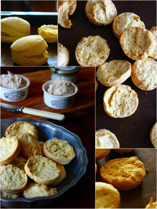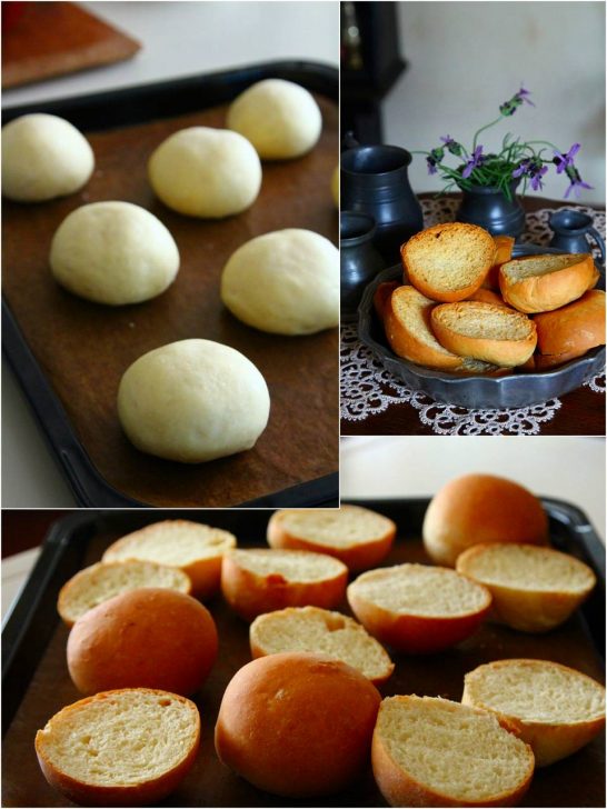 が、こちらはさらに古いレシピ。スコーンの代わりに、イーストを使ったシンプルな丸パンを作り、それを半分に割って、同じようにオーブンに戻してカリカリに焼くタイプです。
