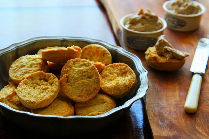 通常は焼いた薄いトーストにのせて食べるブローターペースト、ここノーフォーク、サフォークではラスクにのせ、アペタイザーや午後のお茶のお供の定番でした。
