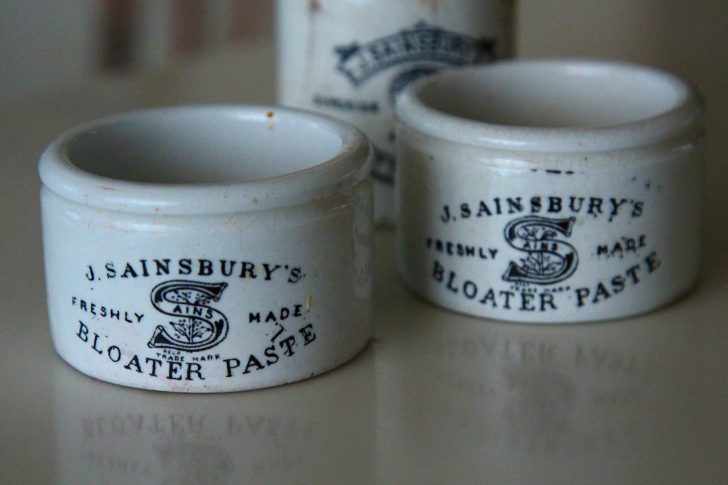 ブローターペーストのブローターとは、ニシンの燻製のこと。通常は開きにして内臓を取り去ってから作りますが、ブローターは内臓をそのまま残した丸の姿のまま、低温で18時間かけて燻製にされます。そのしっとりとしたブローターの身を使って作るブローターペーストは、1900年代前半までは絶大な人気で、イギリス中に販売されていました。