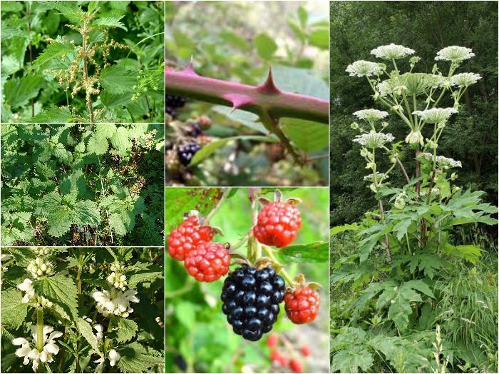 ネトル(左上中)、デッドネトル(左下)、ブランブル(中上下)、ジャイアント・ホグウィード(右)
