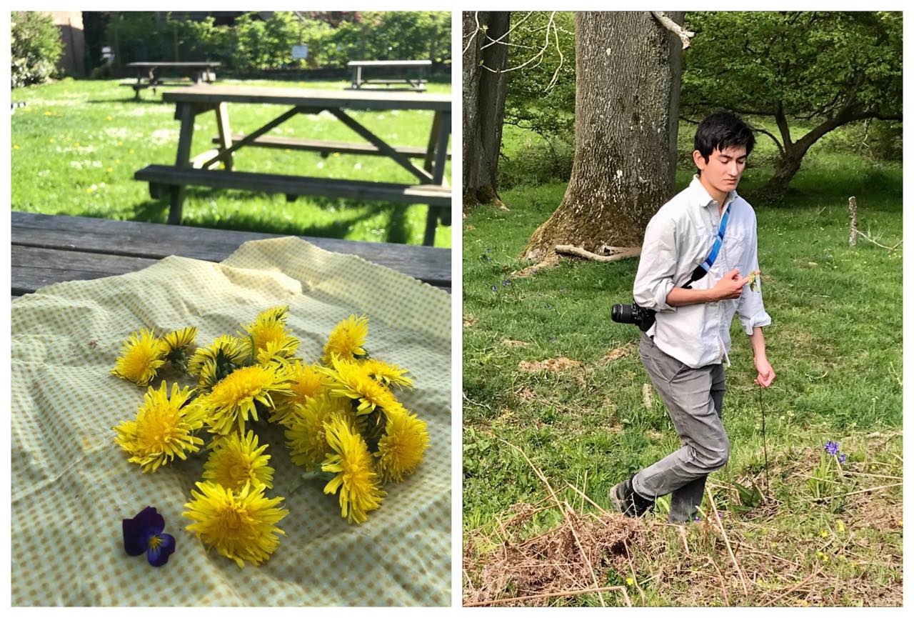 左:タンポポの葉とクレソンのサラダ。右:ワイルドガーリックでペストソース。