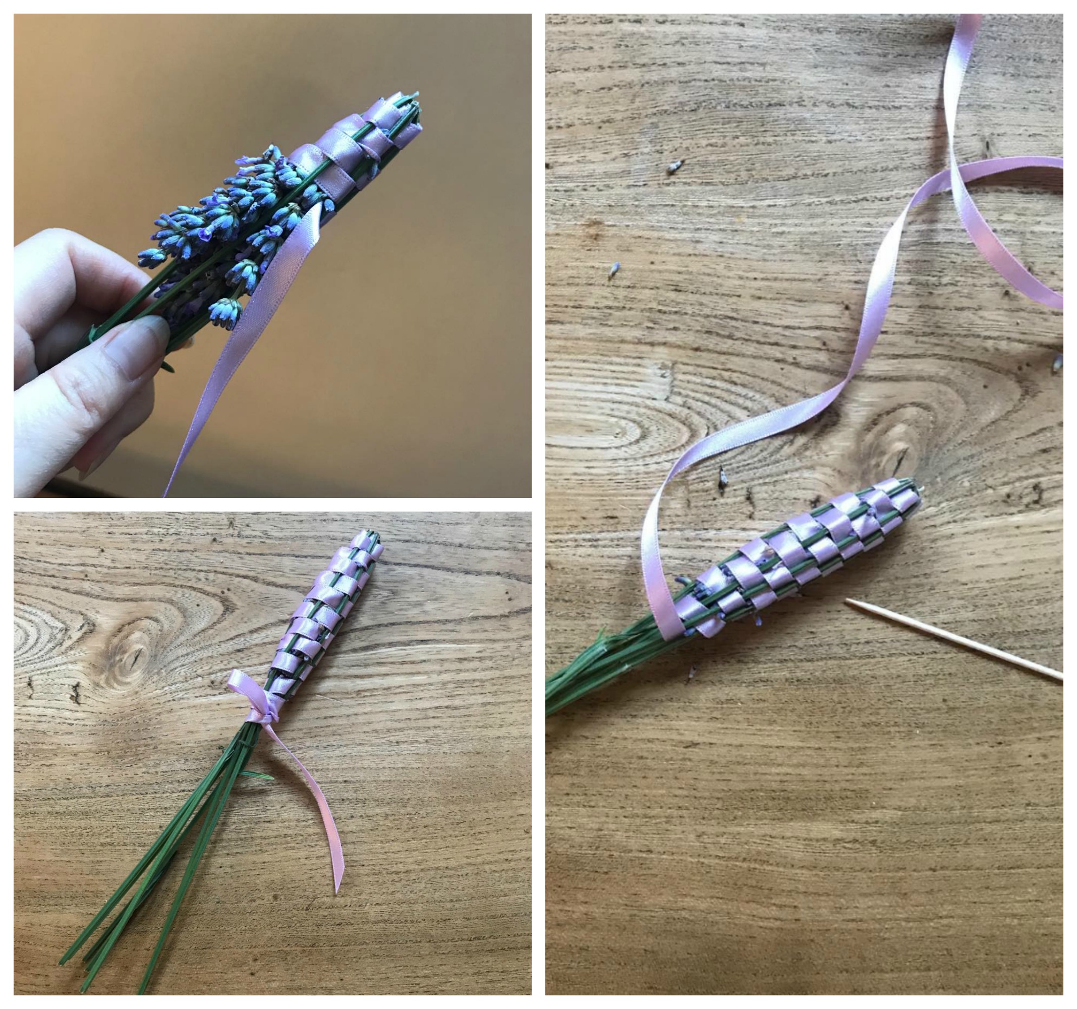小袋のサシェにするのが一番簡単ですが、もう一つここでご紹介するのは昔ながらのラベンダーワンドです。
