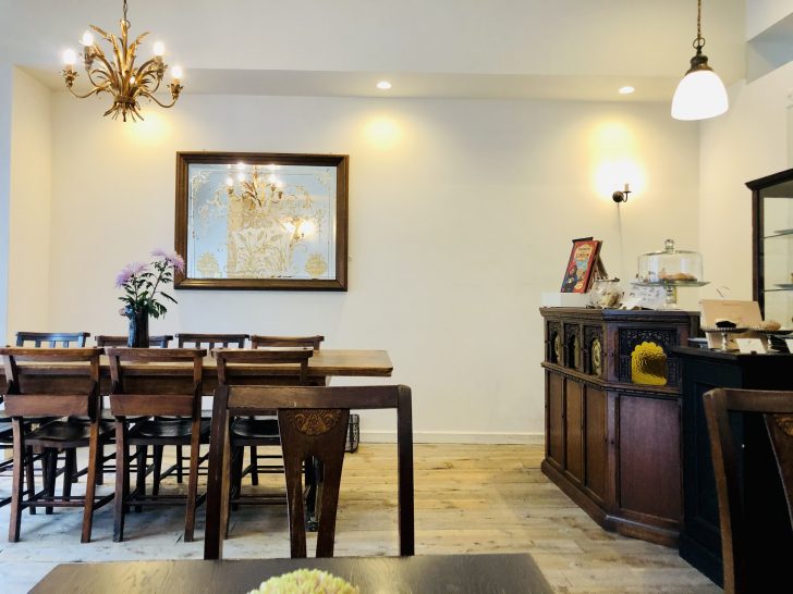 上質なアンティーク家具がずっとティールームの奥へと続きます。シンプルでありながら高級感があり、家具の浮き彫りや独特のデザインに目が奪われてしまいます。また2020年9月に5周年を迎えられたばかり。オープン当初から盛り立ててこられたスタッフの方々と同じように、家具も使い込むほどに質感も色味もますます渋くなってきているのではないかと感じました。壁紙が違う奥のお部屋もまた独特な雰囲気があって素敵でした♪