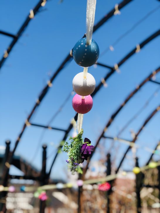 今年のイースターは4月4日。日本語訳では「復活祭」。イエス・キリストの復活を祝うお祭りです。園内のローズトンネルにはひとつひとつ手作りのイースターエッグを使ったガーランドが設置されています。キリスト教では卵は生命のシンボル。そのシンボルである卵をきれいにペイントします。園内でも本物の卵の殻を使用しています。どうぞお手を触れぬようお楽しみください!
