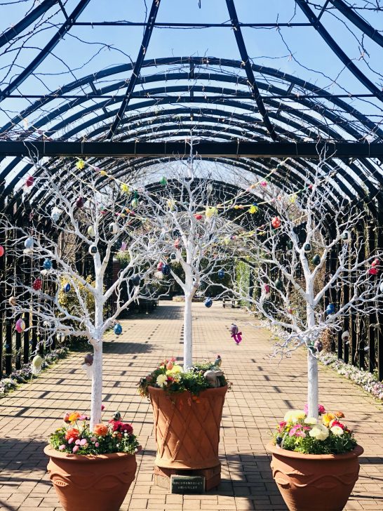 園内の開花状況は公式サイトに見どころ紹介としてアップされています。直近のイベントとして、3月20日(金・祝)〜4月24日(金)は「スプリング ガーデン フェスティバル」の期間となります。期間中は、ローズトンネルの下にレッドカーペットを敷き、春の花に囲まれた花道が登場します。イースターエッグのディスプレイも展示中です。花道を通り抜けたら、まずは30品種以上のサクラの木の下で春色の風を浴びてみてください。足元にはチューリップ、パンジー、ヒヤシンスなどが見頃でしょう。