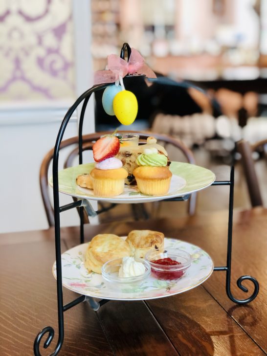 水色と黄色の卵と一緒に運ばれてきた二段スタンド。♫ は〜る色の汽車にの〜⤴︎って♬ なんて口ずさんでしまうくらい春色広がるアフタヌーンティー。