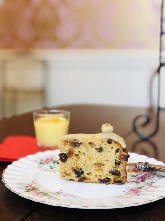 イギリスでイースターのケーキといえば黄色の「シムネルケーキ」。ブランデーで煮たドライフルーツをたっぷり焼き込んだフルーツケーキです。黄色のマジパンで作ったボール11個を置き、表面に軽く焼き目をつけたもの。その昔、家を離れ屋敷などへ奉公に出ている少女たちが家に帰ることを許されるのがイギリスの母の日「マザリング サンデー」で、お母さんのためにシムネルケーキを焼いて里帰りをしたそうです。遠い昔を思いながら、ひとくちひとくちを噛み締めました。最後はイースターカラーのグラスデザート、マンゴームースでご馳走様でした。ランチ代わりにも楽しめる小ぶりで上品な焼き菓子たち。ちょっと忙しさから解放されたい1時間があれば、十分に楽しめるベリーズティールームさんのイースター・アフタヌーンティー。おひとり様より予約を受け付けています。3、4月の金土日、①12:00〜 ②14:30〜 各回8名様まで、お一人¥3,700(税抜き)になります。ご予約は専用サイトでどうぞ!