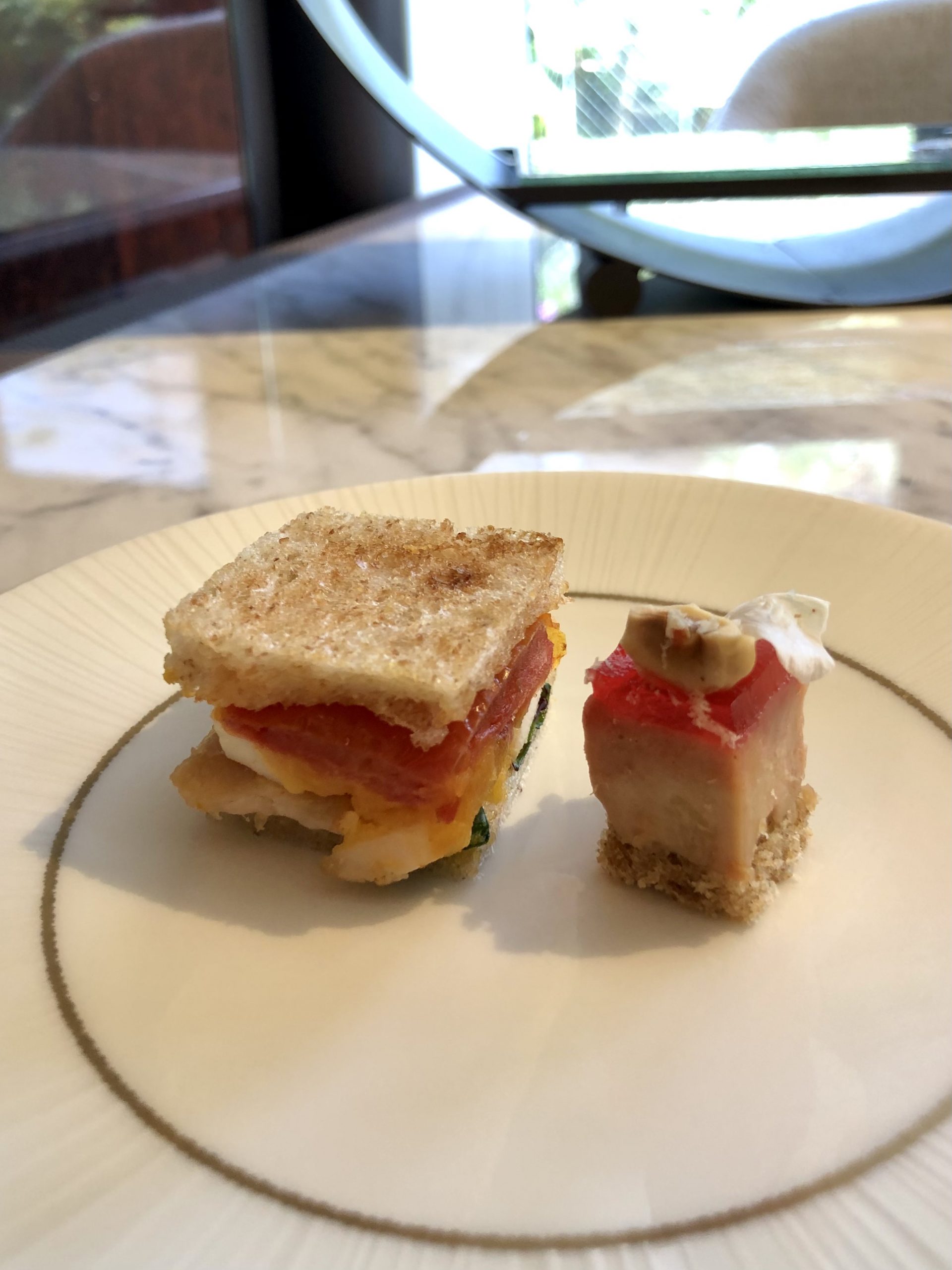 フォアグラとジンジャー香るパンドエピス 桜のゼリー:季節感あふれるセイボリー。スパイスが決め手。