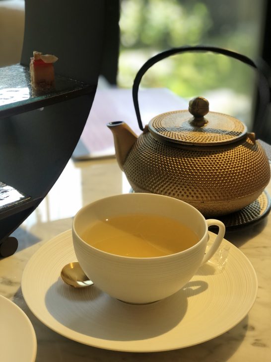 2番目にリクエストしたお茶は「ワンナイト イン キョウト」京都限定のフレーバーグリーンティーです。ブランドカラーであるゴールドの急須で登場。チェリー、洋ナシ、タンジェリンのフルーティーな香りが広がります。