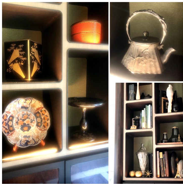 中央のお花を取り囲むように私たちが席に着きます。サロン内の和のもの、洋のものが私たちを取り巻いています。