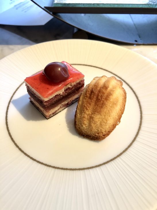 栗パルフェとパントジェンヌ:フォションのチャイティースポンジを土台にした栗パルフェ。メレンゲスティックの優しい甘さが、クリームによってさらに甘さを引き立たせるように思います。素材が口の中で一緒になっても、独立した味が感じられ、最後にチャイティーで締めくくるという贅沢な逸品。