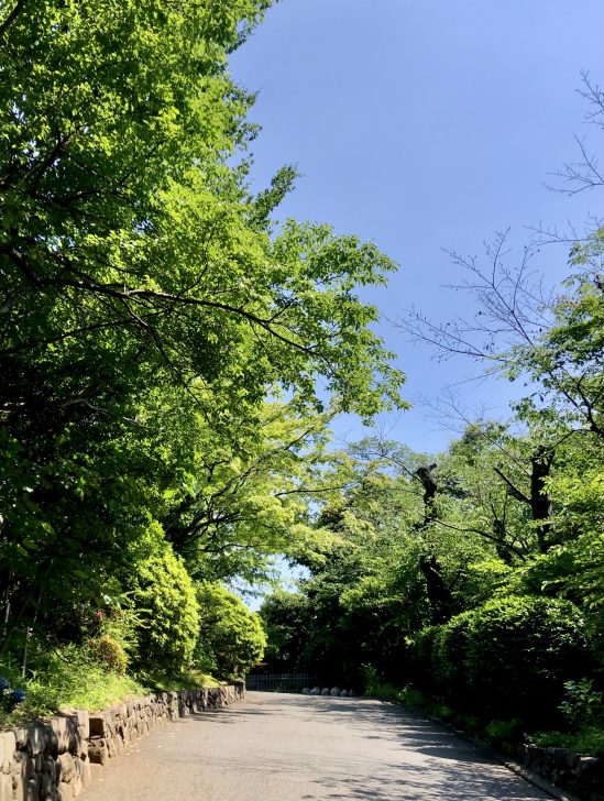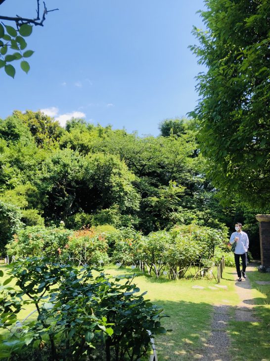 そして楽しみにしていたバラだったのですが…今年の日本の5月は非常に陽気が良く、訪れた頃は初夏を匂わせるほどの気候でした。例年ならまだ一番花が咲き誇っている時期なのですが、ちょうど二番花に切り替わる時期に重なってしまったようです。燦々と照りつける太陽に一面新緑色、バラの姿はどこにも見えません。ちょっとどころか、すごく残念( ; ; )とは言っても、これだけ見事な樹々が生茂るお庭にそびえ立つイギリス風の洋館。都内にこんな場所があるんだと、これから始まる美味しい時間に胸躍らせながら、お庭の散歩を楽しみました♪