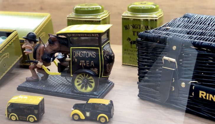 皆さん、「TEA MAN(ティーマン)」ってご存知ですか?イギリスでは「TEA MAN」=紅茶配達員が家庭に紅茶やビスケットをお届けするリントンズならではの素敵な伝統があります。こちらの大きなバスケットにリントンズ商品をたくさん詰めて今もなお続いているのです。