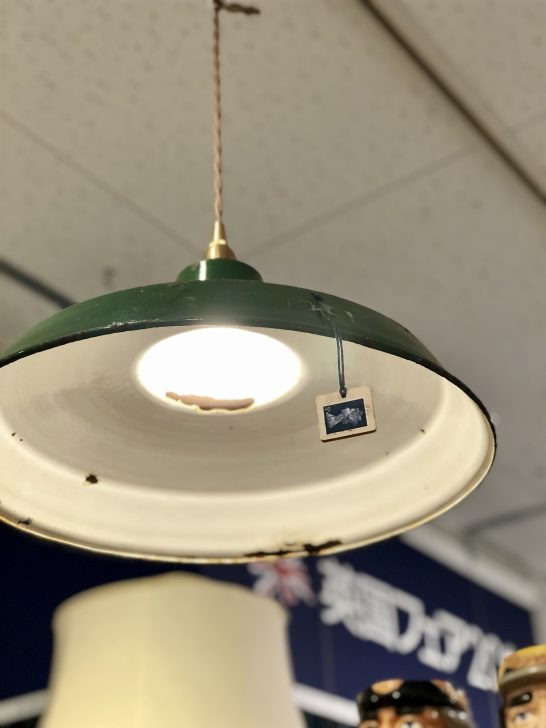 1920年代のイングランド製ホーローのシェード。この緑が素敵でうっとり見上げるばかり♡