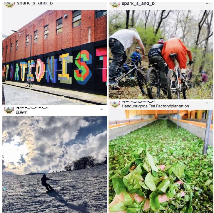 右下:スリランカ紅茶旅 工場見学。とれたての茶葉を乾かす工程他、季節、その土地を通じたお茶と自転車の楽しみ方を垣間見れるインスタグラムたち