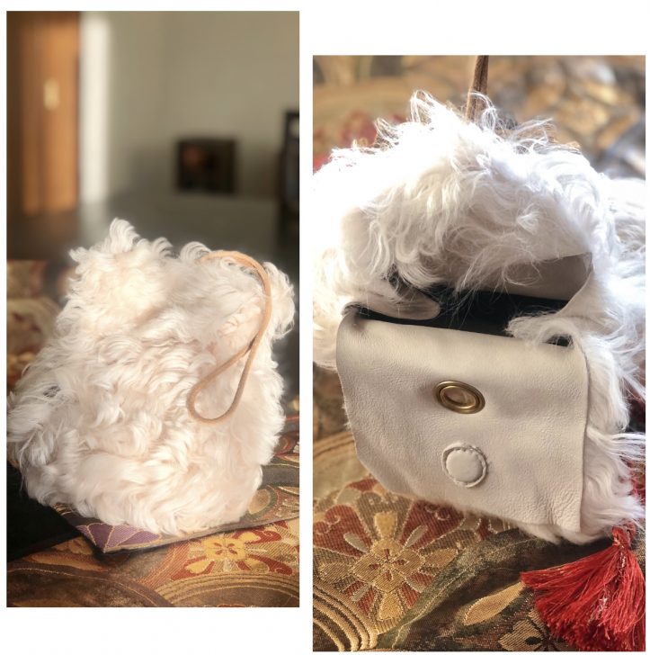 イギリスブランドのオリジナルシープスキンバッグ。艶やかに振袖を引き立ててくれました。可愛さと高級感あふれる一級品。思い出残る成人式の一幕に、この色のバッグにして良かった。