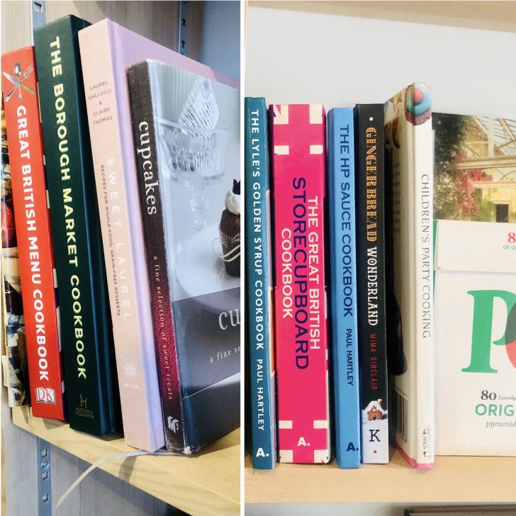 クックブックがずらり。レシピはもちろんのこと、テーブルセッティングやティーパーティーのヒントにもなりそうです。表紙もデザインも文字も美しい!