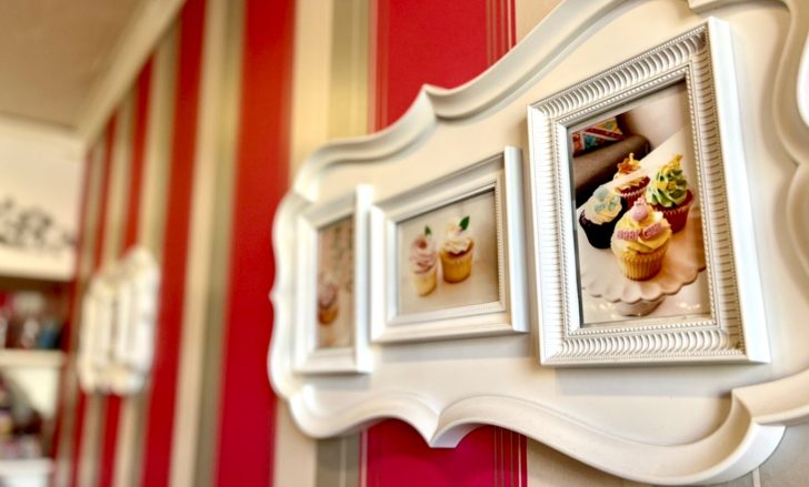 私達が訪れたのは名古屋店。覚王山駅から徒歩10分。白とピンクを基調としたポップでキュートな外観。扉の向こうでどんなカップケーキが待ち受けているか、想像するだけでワクワクものです。朝10時オープン、一番乗りの私達。ふんわりバタークリームの香りに包まれたメルヘン空間。