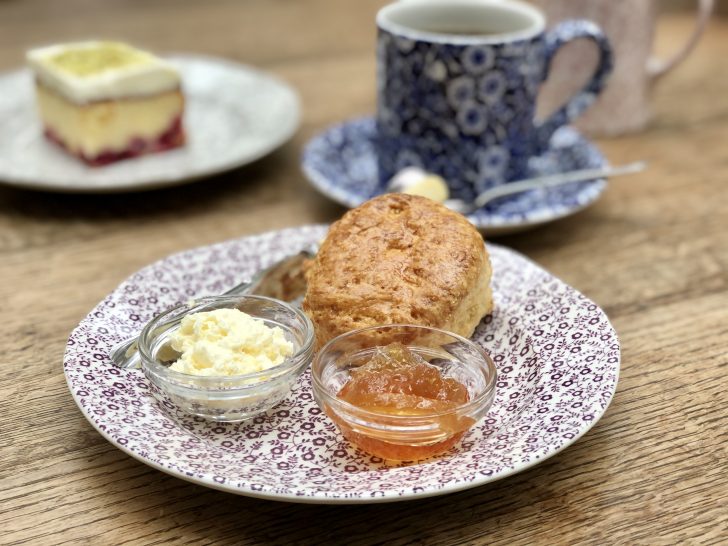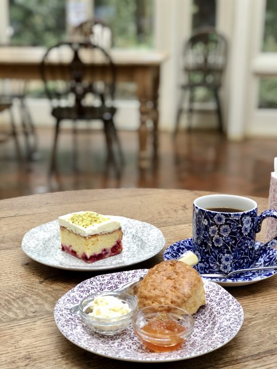 楽しむお相手はクリームティーとクランベリーケーキ。東京からすぐに来れる距離ではないのでね、たっぷり食べて楽しむことにしました。たっぷりマグカップとメニューにあったのでオーダーしたらコーヒーでした。てっきり紅茶だと思い込んでいた私…。コーヒーと書いてあったのを見落としていました (^_^;)