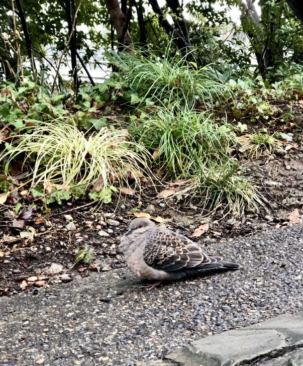 雨上がりの登り坂、まるで私を待ち構えるかのように鎮座するハト。いきなり嬉しいじゃないですか、可愛いじゃないですか。あ〜思い切って来て良かったなと、またまた胸がいっぱいになりました。