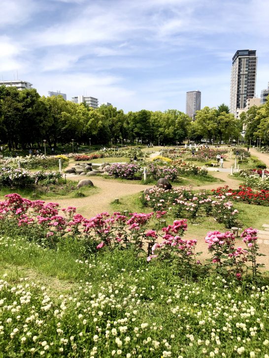 その日は朝からまだ肌寒い人がまばらな公園で、ゆっくり散歩がしてみたくなりました。そうだ、今はちょうどバラが咲き誇る季節。調べてみると関西圏にも素晴らしいイングリッシュガーデンがたくさんありました。でも私が住んでいるところからはかなり遠い。電車で移動できる近距離でバラ園はないか。すると大阪市内の公園でバラ園もあるところがいくつかありました。