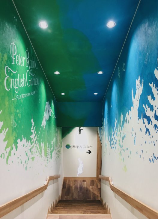 高さ約8mの展望塔へ登る階段に現るピーターラビットの仲間たち。