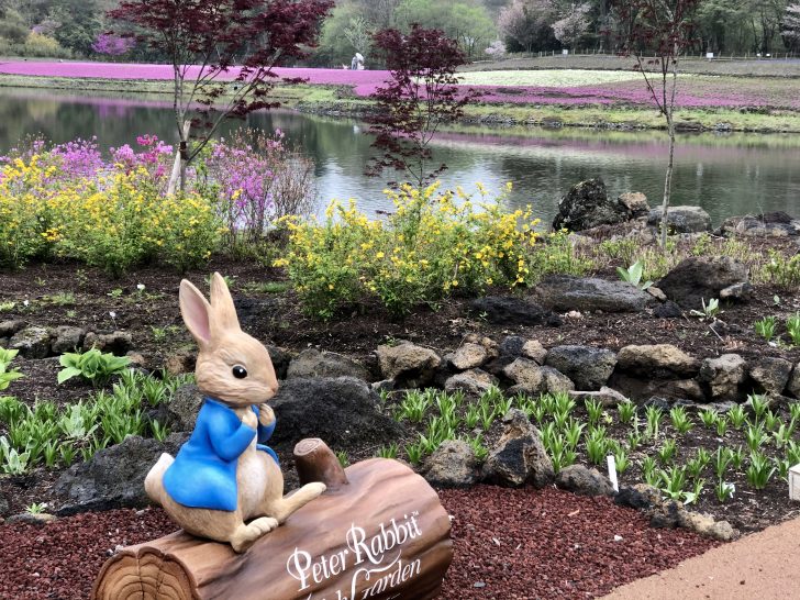 色とりどりの芝桜とピーターラビット イングリッシュガーデン。