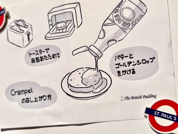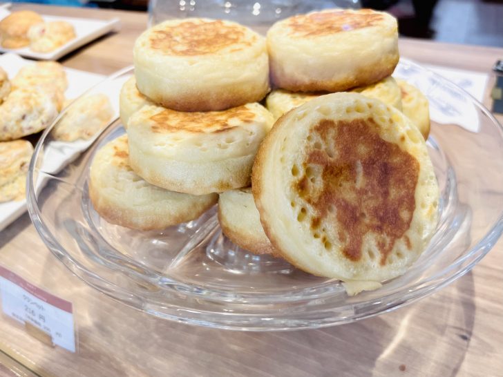 この日の私は「クランペット」狙いでした。イーストで発酵させて作るため、表面に独特の穴が開いているのが特徴です。ウェールズ語の古語クレンポグ(crempog)が語源と言われています。