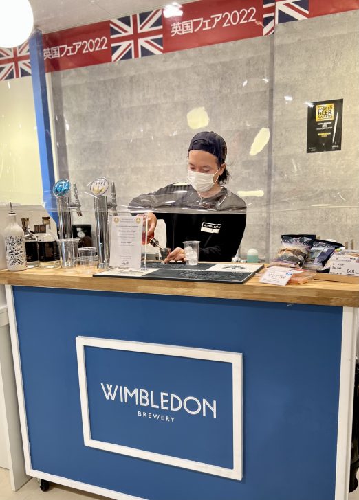 2021年の阪急うめだ英国フェアが初出展となったウィンブルドン ブルワリーさん。(2021年英国フェアの様子はこちらから)今回は更に売り場面積を広げ、横田店長はタップスタンドの店主としても大忙しです!