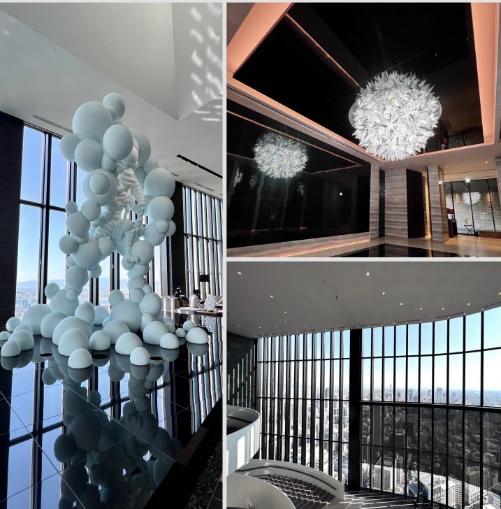 コンラッド大阪の魅力は地上200mのパノラマビュー。重厚感あふれる螺旋階段。一面ガラス張りの窓からは、大阪の街並みを一望することができます。