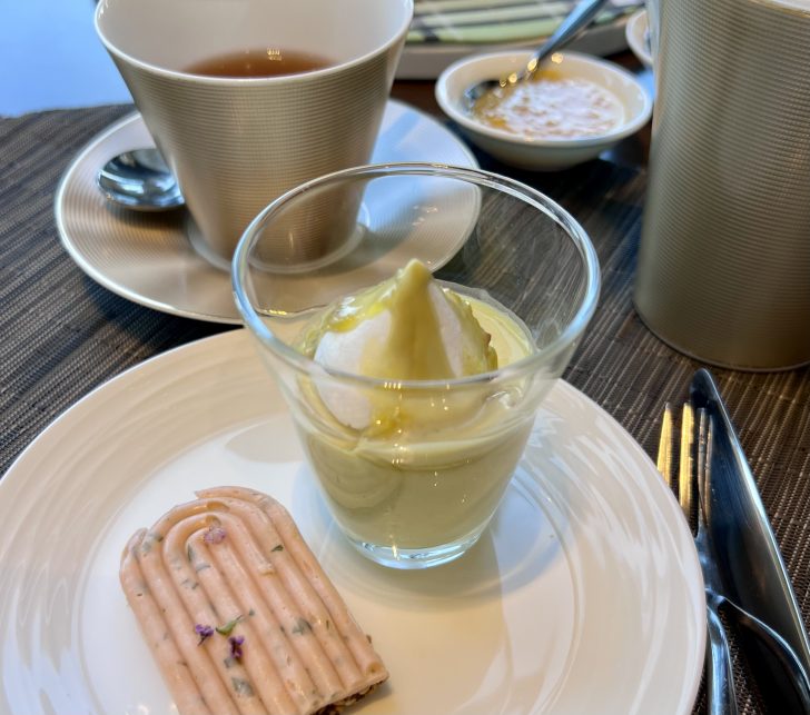 そして柑橘類のピューレでまとめたピスタチオとヨーグルトのパンナコッタで、一旦お口直しです。