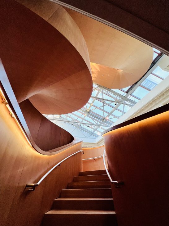 私のスパイラルな夏と、重厚感あるホテルの螺旋階段。スパイラル・アフタヌーンティーに、次々と繋がる相方の共通点。余談ですが、9月に訪れたカナダ・トロントにある美術館にはこんな立派な螺旋階段もありました。