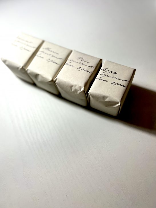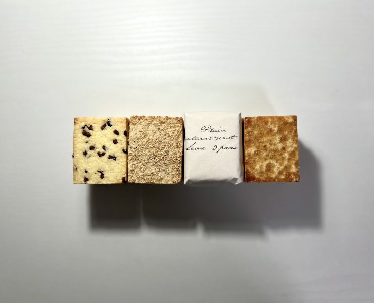 白い外包みを広げると、その中でもう一枚透明の包みに包まれています。その透明の包み方の、それはそれは美しいこと。すべての作業を一人で行っているためなかなか多くの数を生産することができませんが、その手作業にどれほどの思いが込められているか、今回初めて手に取り、口に運び、少しわかったような気がしたのです。焦らず、気長に待ち、とてもいいタイミングで巡り会えたtohe (トーエ)さんのスコーンでした。