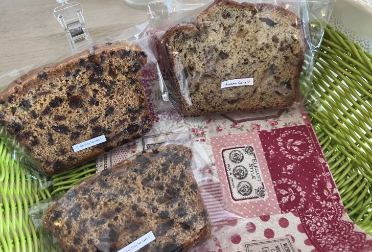 ・右:カランツ、サルタナレーズンたっぷりのアールグレイティーケーキ。バター、油脂を未使用のローカロリー。ミルクティーに合いそう♡