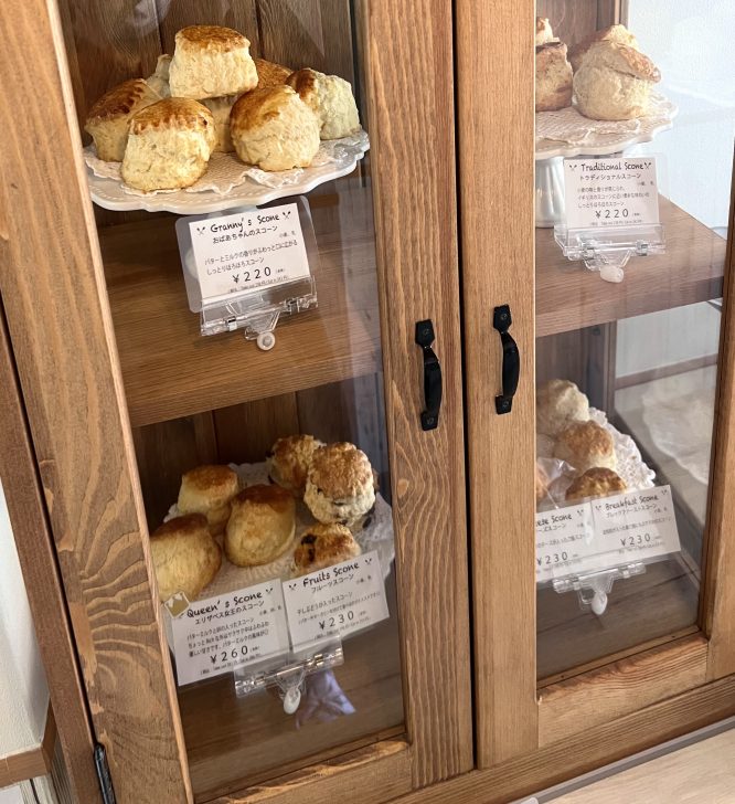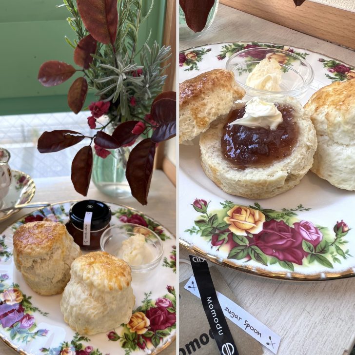 右:おばあちゃんのスコーンと名付けられた、軽めの粉でミルクとバターの香りがするほんのり甘いスコーンです。この優しい味は、きっとイギリスのおばあちゃんに通じているんだろうなと思い噛み締めました。