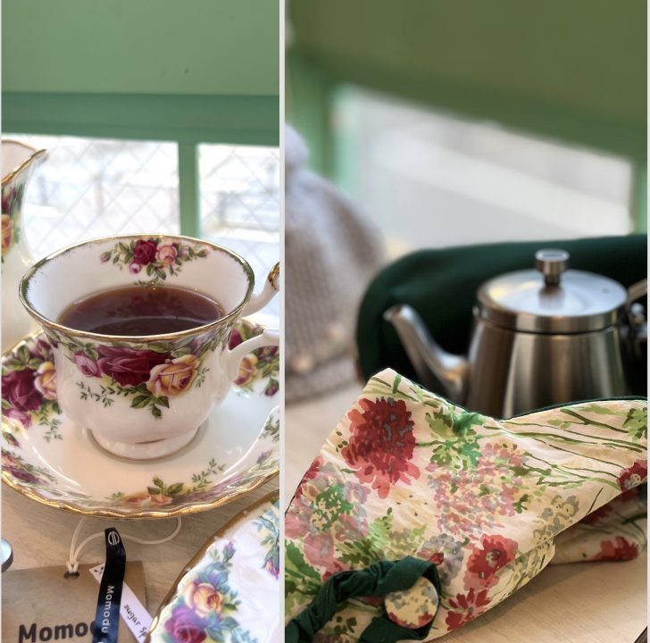 紅茶は「シュガースプーン」さんのスコーンとケーキにあった「スシーラティー」さんによるオリジナルブレンドティーです。西宮市甲東園と世田谷区等々力で紅茶教室を開催し、スリランカに自社茶園を持つ現地直輸入の新鮮な紅茶。ストレートでもミルクでもいつまでも香りよく引き立つ味わいでした。