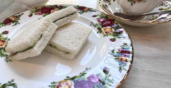 下段はハムときゅうりのサンドイッチです。薄めのパンがおなかに優しく、スコーンへと繋いでくれました。