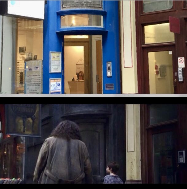 ダイアゴン横丁(レドンホールマーケット)下が映画、ハグリットとハリーが映っている同じ場所に立ってみたのが上の写真。^^;