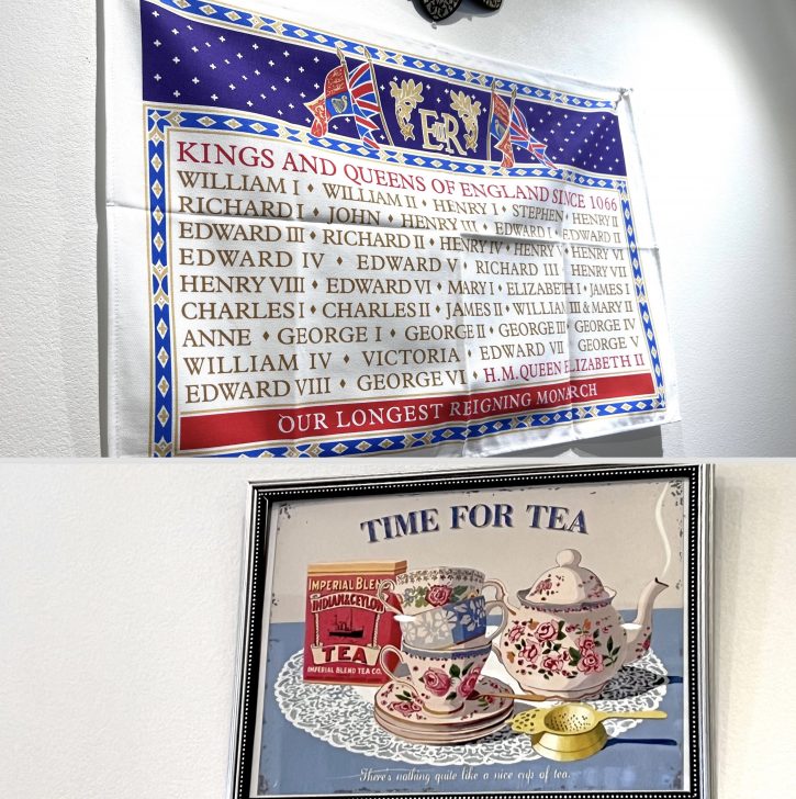 2017年11月にオープンしたティールームは、13席のみの小さなお店です。カウンターにはイギリスの食器と、伝統的なレシピをアレンジした焼き菓子が並び、壁にはイギリスやティータイムにちなんだアート、ヴィンテージの食器たちが飾られ、ほどよい距離感で座るお客さんをイングリッシュ・ティータイムに誘い込んでくれます。