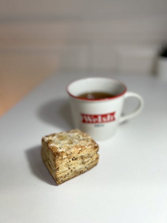 クロテッドクリームもジャムもつけずに、毎朝あたためて一つずつ頬張りました。しっかりと食事としてお腹にたまるグルメなスコーンです。