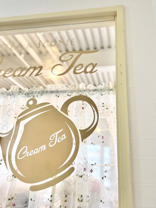 白い扉の向こうに立つ店主さんが迎えてくれました。2021年6月にオープンした、カウンター4席の紅茶とスコーンのお店。中央のオープンスペースを中心に、360度クリームティーの世界が広がります。何気に読み流していたお店の名前を、一歩入ってなるほど!と肌で感じました。