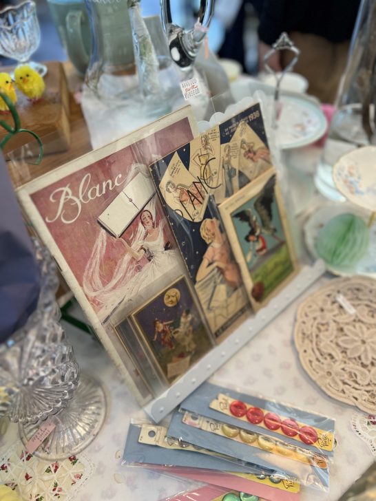 東京・小平にあるアンティークショップ 。今回のマーケットには美しいカードやファッション誌、ミニポスターなどの紙もの、レース・リボンなどの手芸素材を中心に、人気のスカーフがたっぷりです。