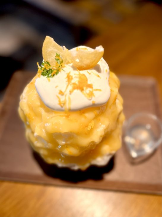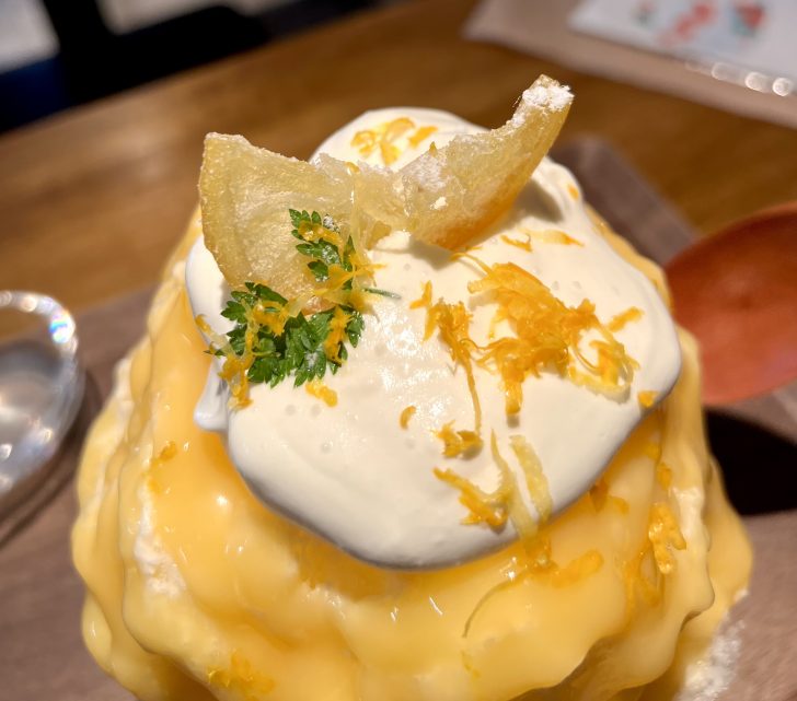 スポンジを思わせるような舌触りと、ミネラル豊富で氷自体に旨みが感じられます。やわらかいレモンホイップが、口の中でさらにレモンカードを引き立て、とっても美味しいです♪