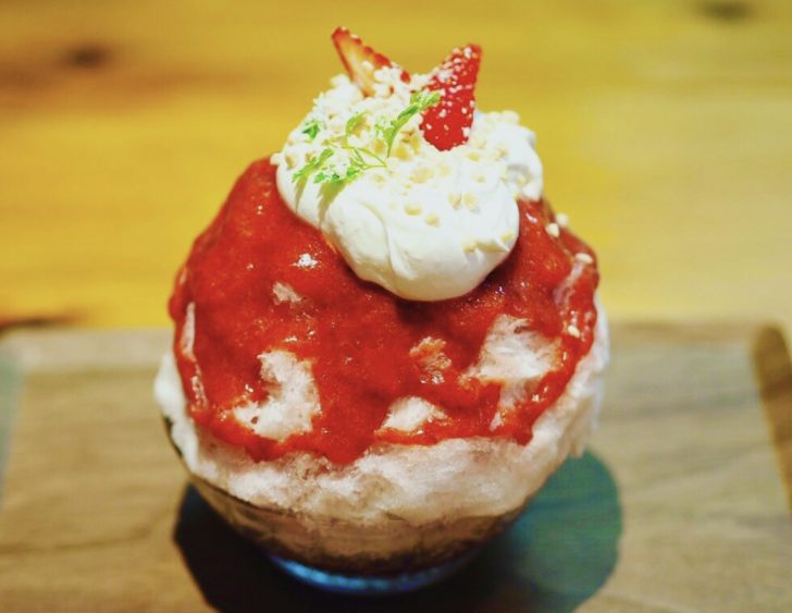 「天然氷」と真夏に聞くと特別な響きを感じますよね。では「天然氷」とはどんな氷かご存知ですか。山間などの自然環境下に池を造り、そこに湧水などの良質な水を注ぎ、ゆっくりと自然の寒さで凍らせた氷のことです。要するに、冷やして氷にするのではなく、冷えて氷になったもののことをいうんですね。しかも暑さが15㎝程度になるまでじっくり育てるそうですよ。その天然氷を保管する蔵元が全国に五つあり、その一つが長野県にあります。その蔵元の天然氷を「氷麗」さんでは使用しています。