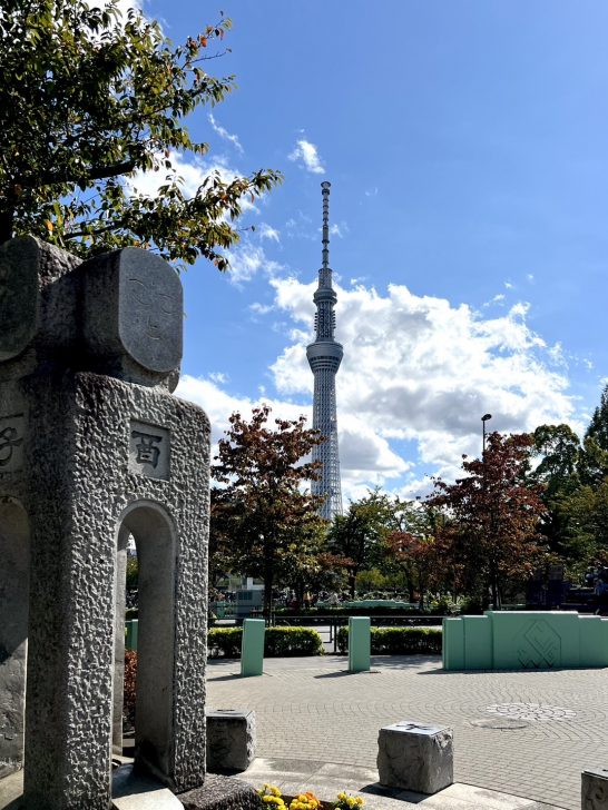 暫し周辺散策。バス通りからは東京のランドマークのひとつ、東京スカイツリーを仰ぎます。浅草の人達には生活の一部となっているスカイツリーですが、私にとってはまだ登ったこともないし間近で見るだけでも凄い!また富士山と明治神宮、皇居、茨城県鹿島神宮を結ぶ直線「レイライン」上に建津スカイツリーは、ポジティブなエネルギーが集まる場所と言われているそうです。