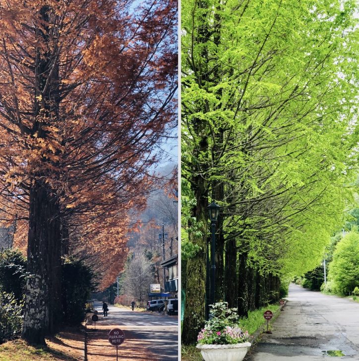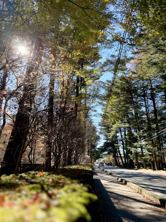 翌日はうってかわっての暖かい散歩日和。どうしても見たかったものがあり、早朝から軽井沢駅の南側に車を走らせました。