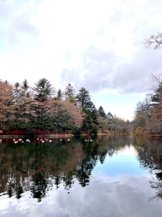 軽井沢に「六本辻交差点」という円形の交差点があります。つまりイギリスでよく見られるラウンドアバウトのことです。その近くに雲場池という小さな池があり、水面に映る四季折々の自然が美しい場所なのです。すでに紅葉は終わり、裸ん坊に近い景色ではありますが、日が暮れぬうちに初雪の軽井沢を目に収めたくて散歩に出かけました。ロマンチックでしたが… 寒すぎでした。